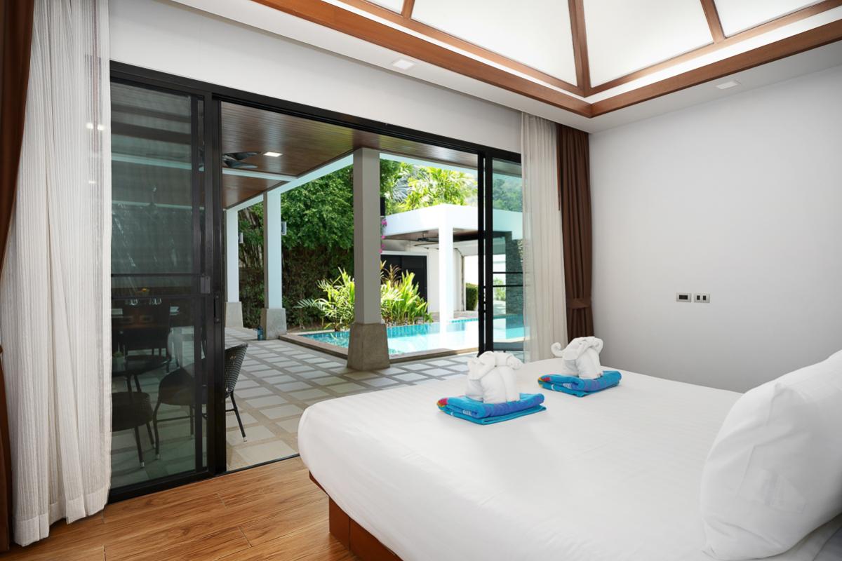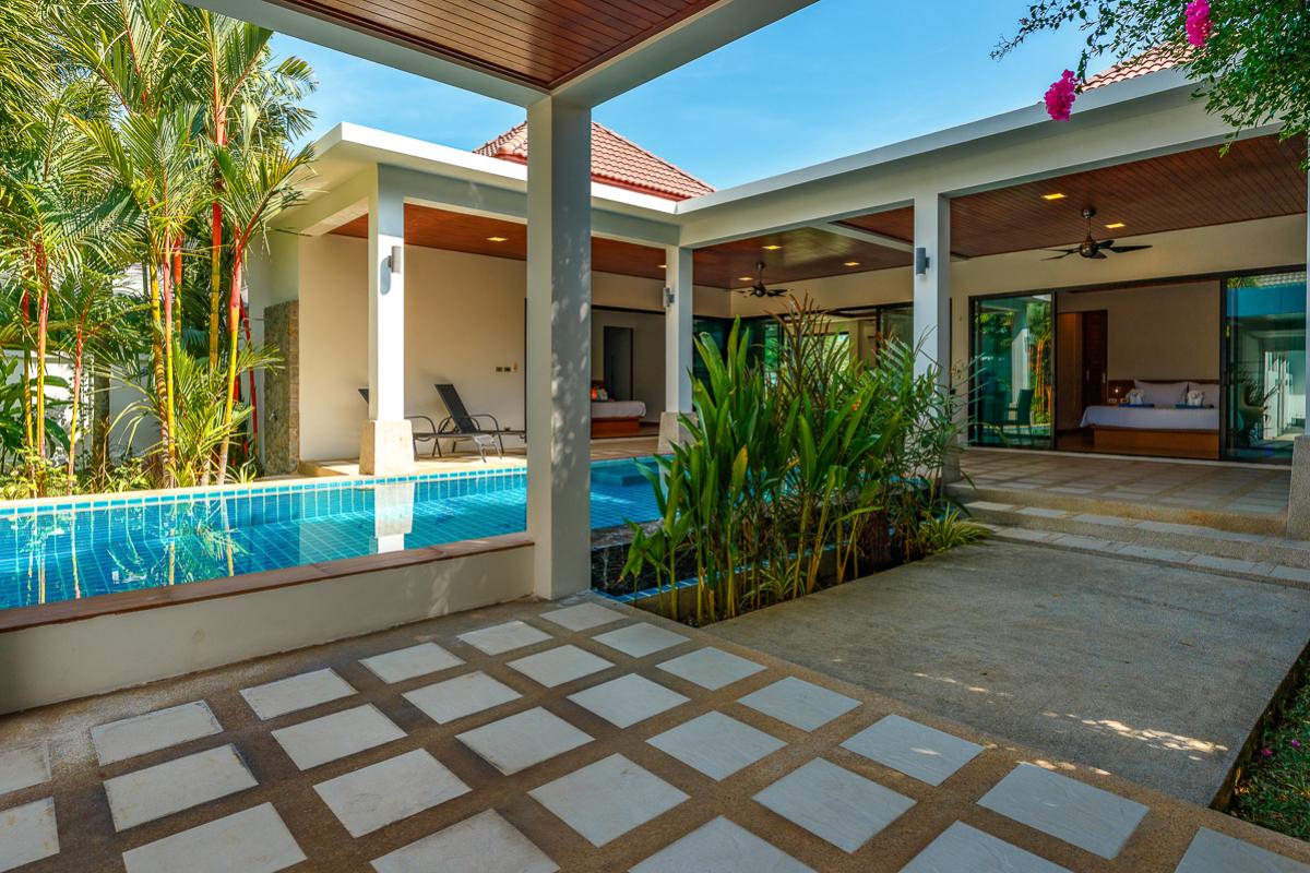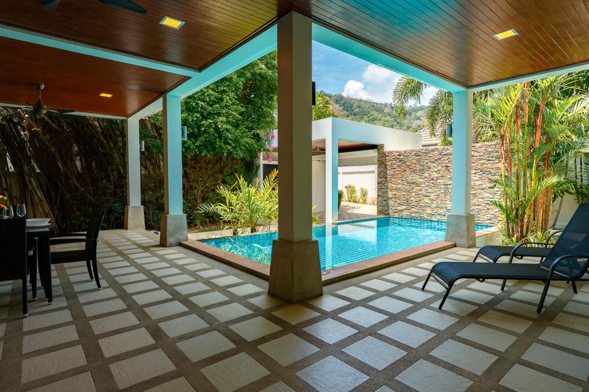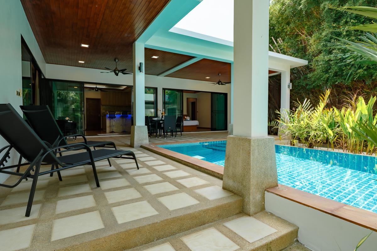 The Nest Villa is a comfortable place with two air-conditioned rooms. The rooms are ensuite with bathroom and have direct access to the private swimming pool. It is designed with a tropical modern style that gives a vibrant and enjoyable stay. This villa is fully furnished which includes the terrace with dining table overlooking the pool and sun loungers for a relaxing day by the pool. Feel at home because this villa has a fully equipped kitchen for guest who enjoys cooking. Situated nearby local restaurants with Thailand's appetizing foods, nearby the beautiful Nai Harn beach, bars, and markets.