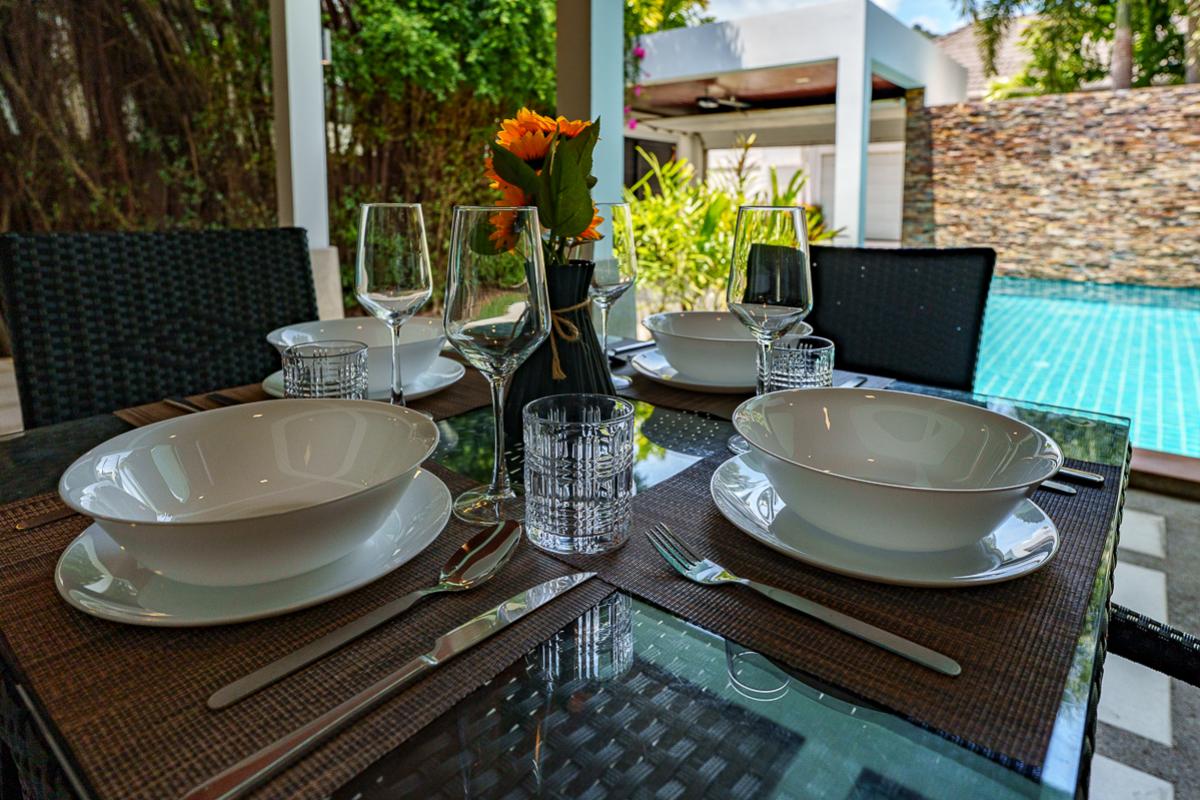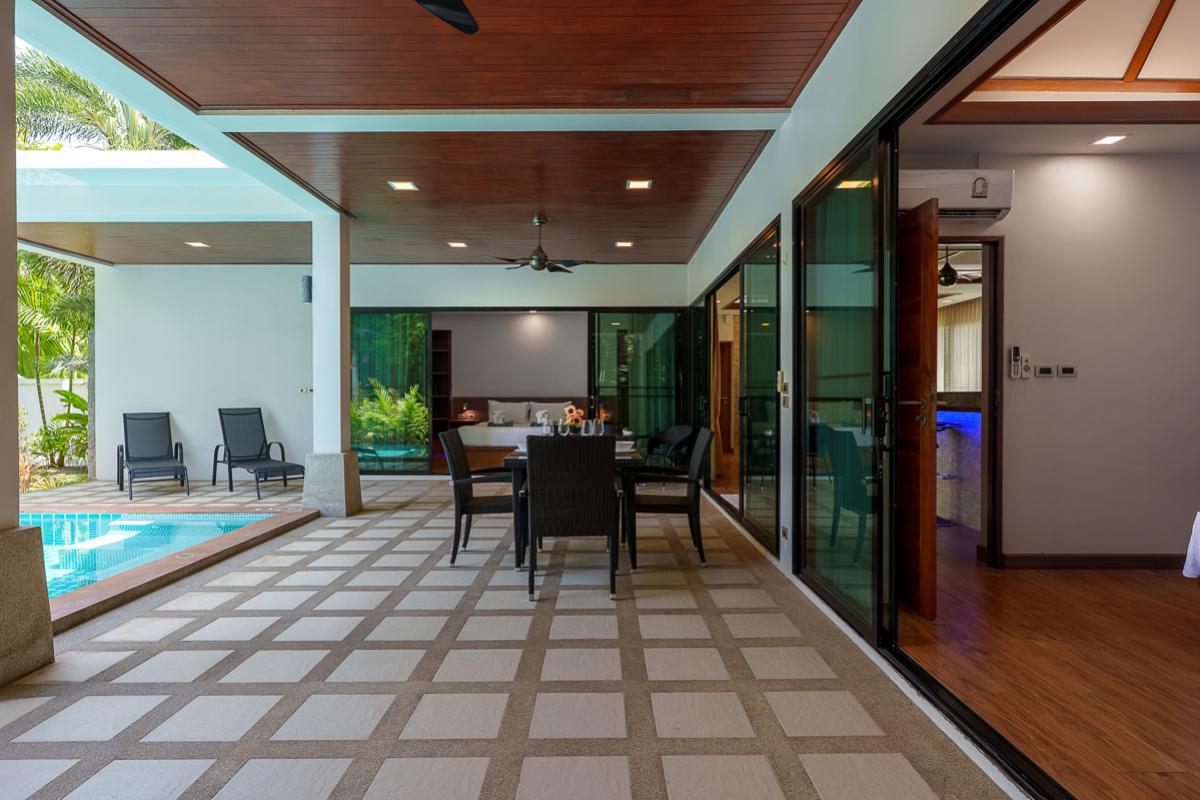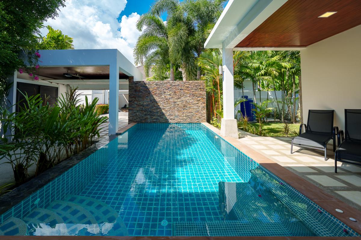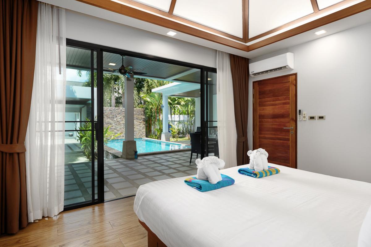 The Nest Villa is a comfortable place with two air-conditioned rooms. The rooms are ensuite with bathroom and have direct access to the private swimming pool. It is designed with a tropical modern style that gives a vibrant and enjoyable stay. This villa is fully furnished which includes the terrace with dining table overlooking the pool and sun loungers for a relaxing day by the pool. Feel at home because this villa has a fully equipped kitchen for guest who enjoys cooking. Situated nearby local restaurants with Thailand's appetizing foods, nearby the beautiful Nai Harn beach, bars, and markets.
