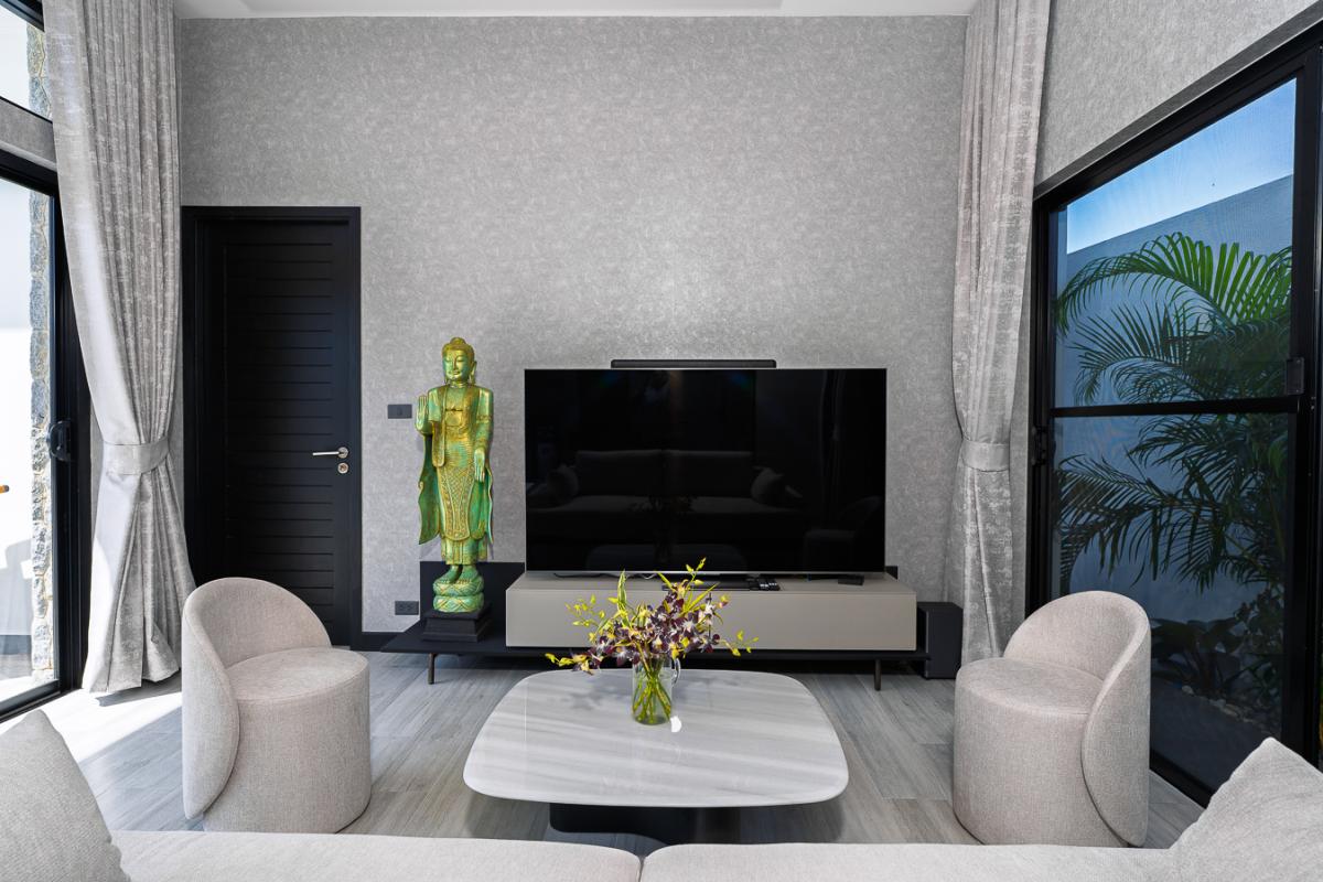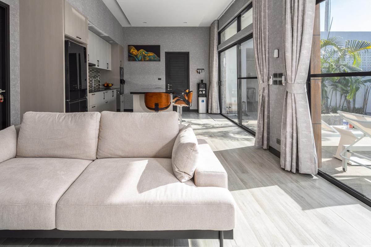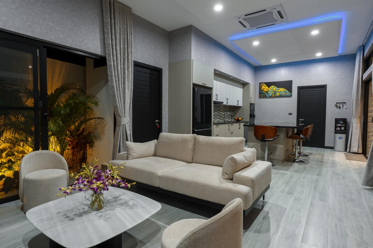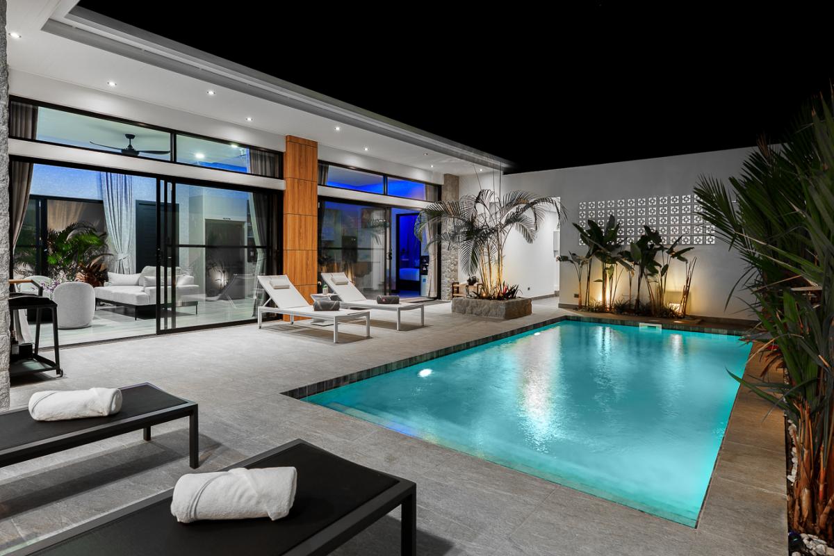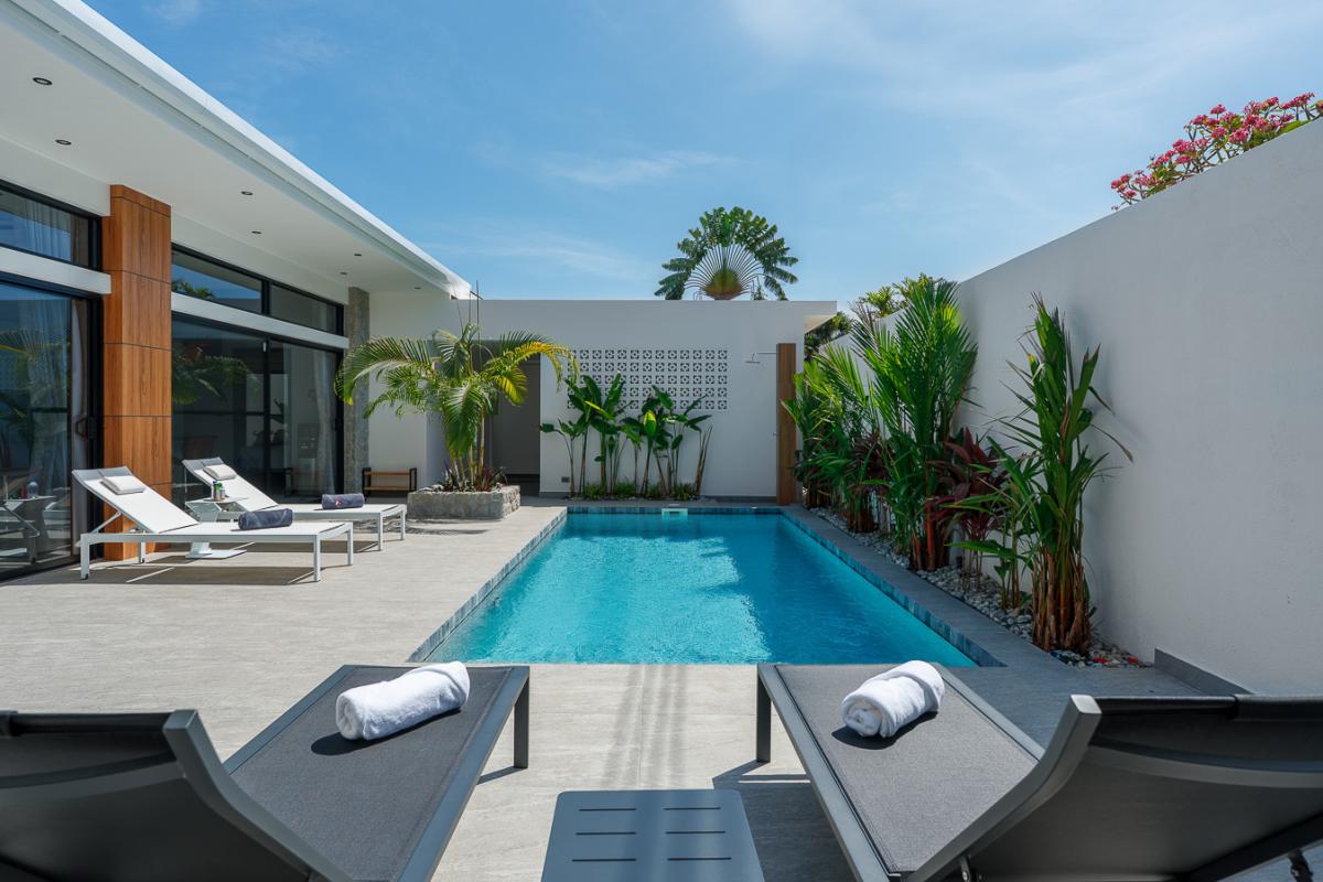 Unwind in our sleek 2‑bedroom pool villa in Rawai, Phuket, designed for ultimate relaxation and tropical luxury. This modern villa features two spacious bedrooms with stylish comforts for a cozy night’s rest. A private rectangular pool set in a lush, tropical patio perfect for lounging and soaking up the sun. Open‑air lounge area with sunbeds, white towels, and stunning views of the pool and greenery. A well-equipped kitchen to cook sumptuous meals. Ideal for couples or a small group seeking a private getaway with easy access to Rawai’s scenery, restaurants, and nightlife. Enjoy sunrise swims, lazy afternoons by the pool, and stylish nights in a luxurious villa that feels like your personal tropical retreat.