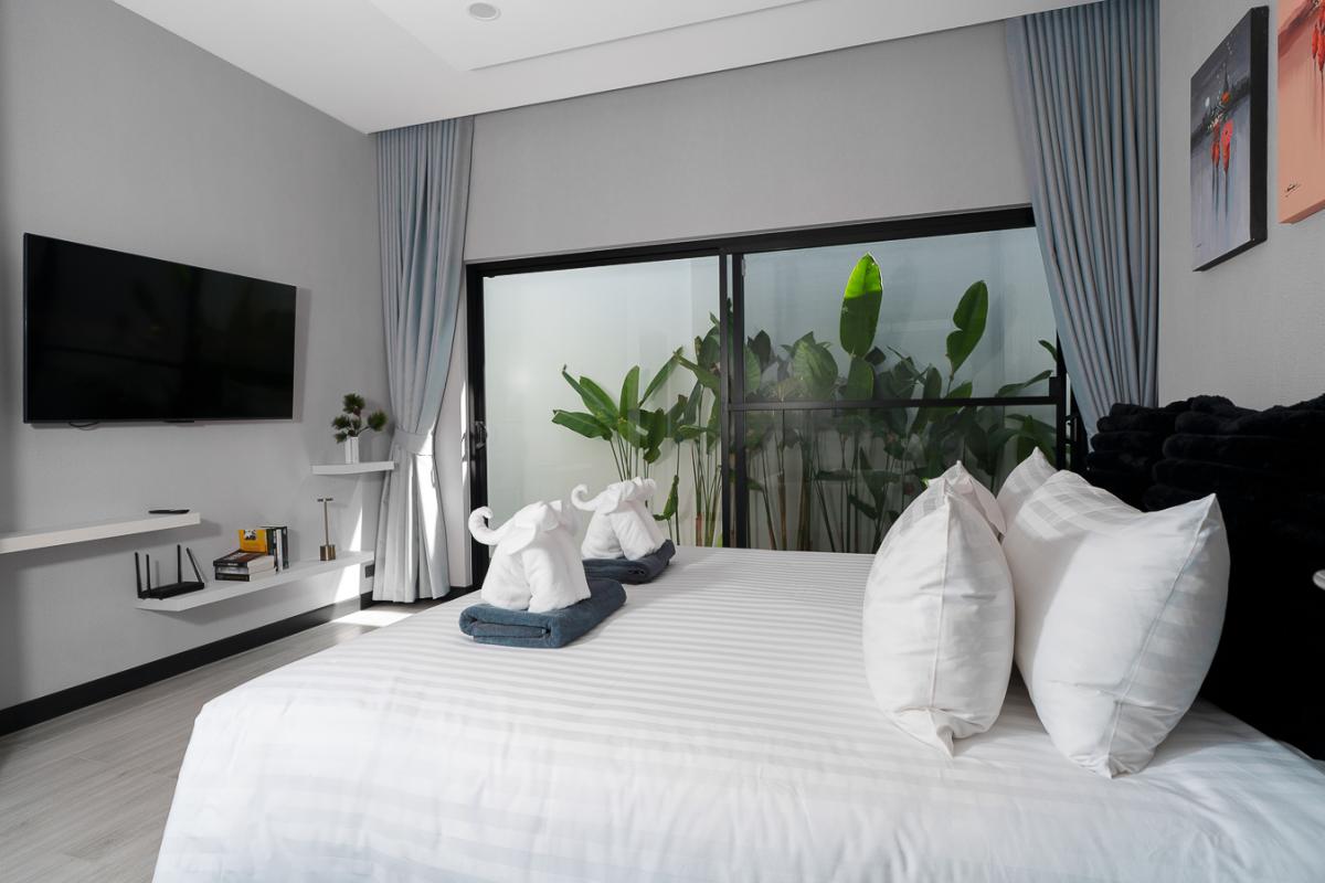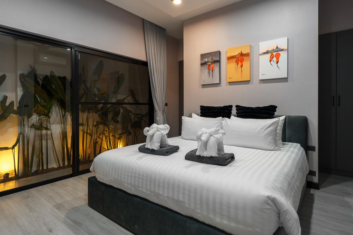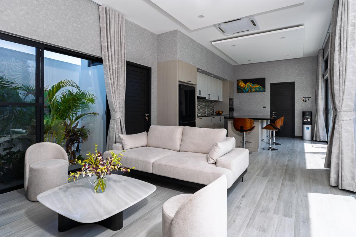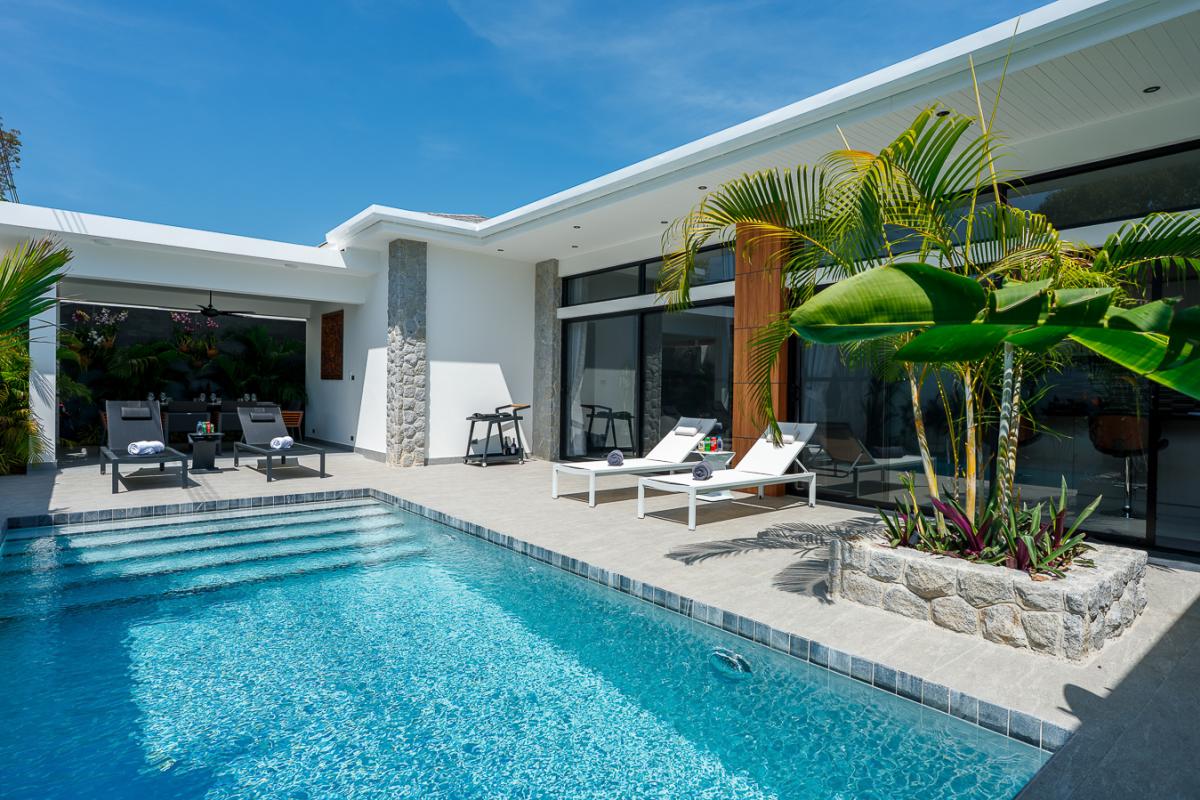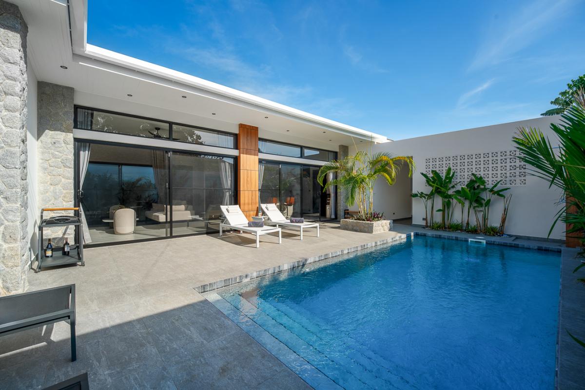 Unwind in our sleek 2‑bedroom pool villa in Rawai, Phuket, designed for ultimate relaxation and tropical luxury. This modern villa features two spacious bedrooms with stylish comforts for a cozy night’s rest. A private rectangular pool set in a lush, tropical patio perfect for lounging and soaking up the sun. Open‑air lounge area with sunbeds, white towels, and stunning views of the pool and greenery. A well-equipped kitchen to cook sumptuous meals. Ideal for couples or a small group seeking a private getaway with easy access to Rawai’s scenery, restaurants, and nightlife. Enjoy sunrise swims, lazy afternoons by the pool, and stylish nights in a luxurious villa that feels like your personal tropical retreat.