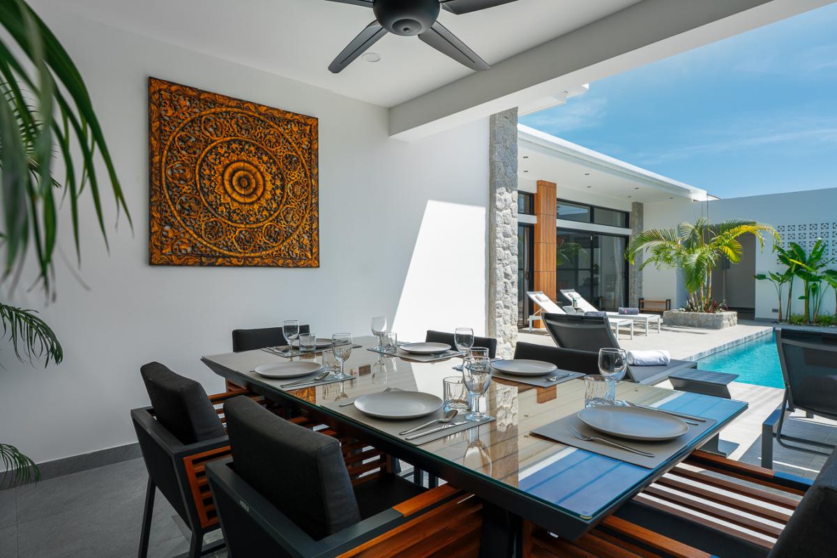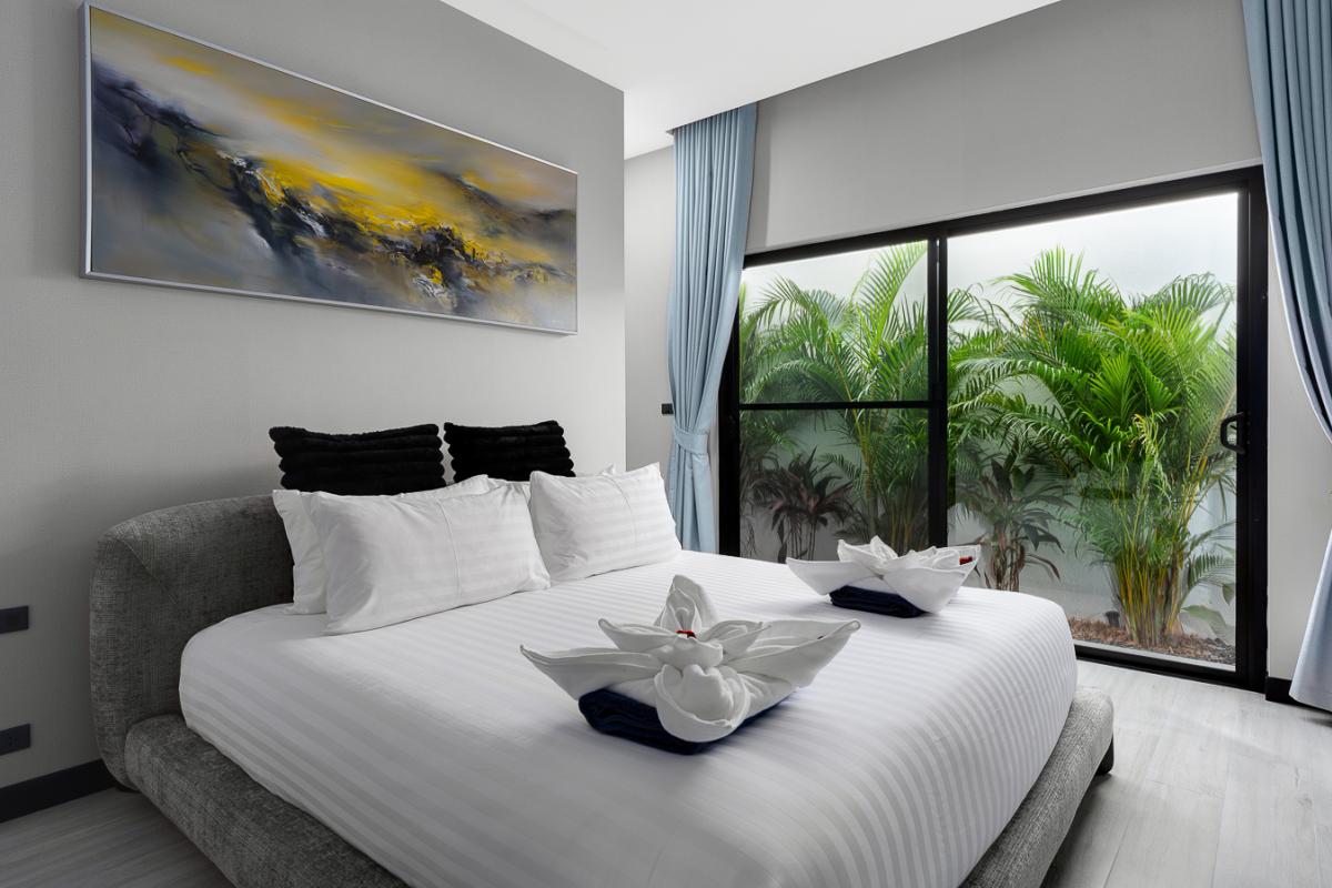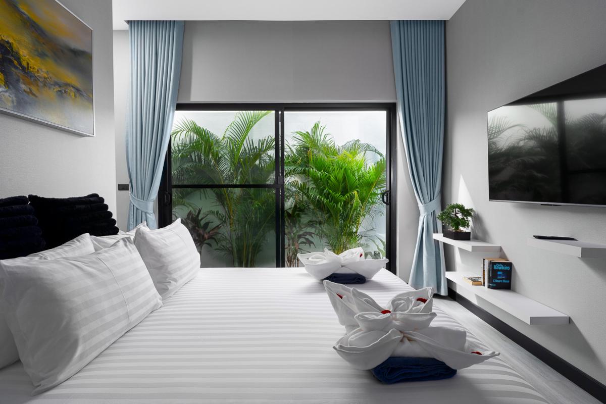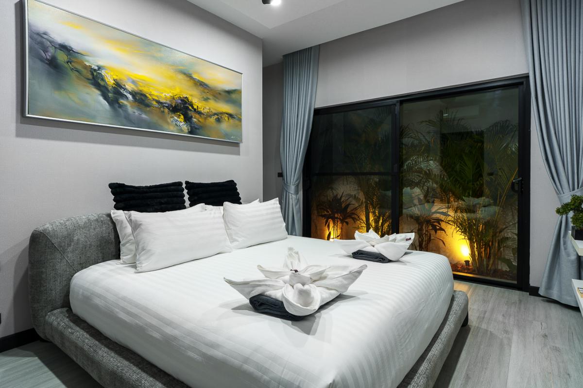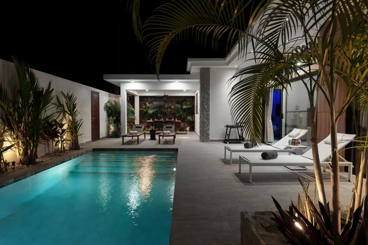 Unwind in our sleek 2‑bedroom pool villa in Rawai, Phuket, designed for ultimate relaxation and tropical luxury. This modern villa features two spacious bedrooms with stylish comforts for a cozy night’s rest. A private rectangular pool set in a lush, tropical patio perfect for lounging and soaking up the sun. Open‑air lounge area with sunbeds, white towels, and stunning views of the pool and greenery. A well-equipped kitchen to cook sumptuous meals. Ideal for couples or a small group seeking a private getaway with easy access to Rawai’s scenery, restaurants, and nightlife. Enjoy sunrise swims, lazy afternoons by the pool, and stylish nights in a luxurious villa that feels like your personal tropical retreat.